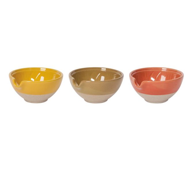 A trio of warm-toned bowls with a mini spout – perfect vessels for prepping and serving sauces.