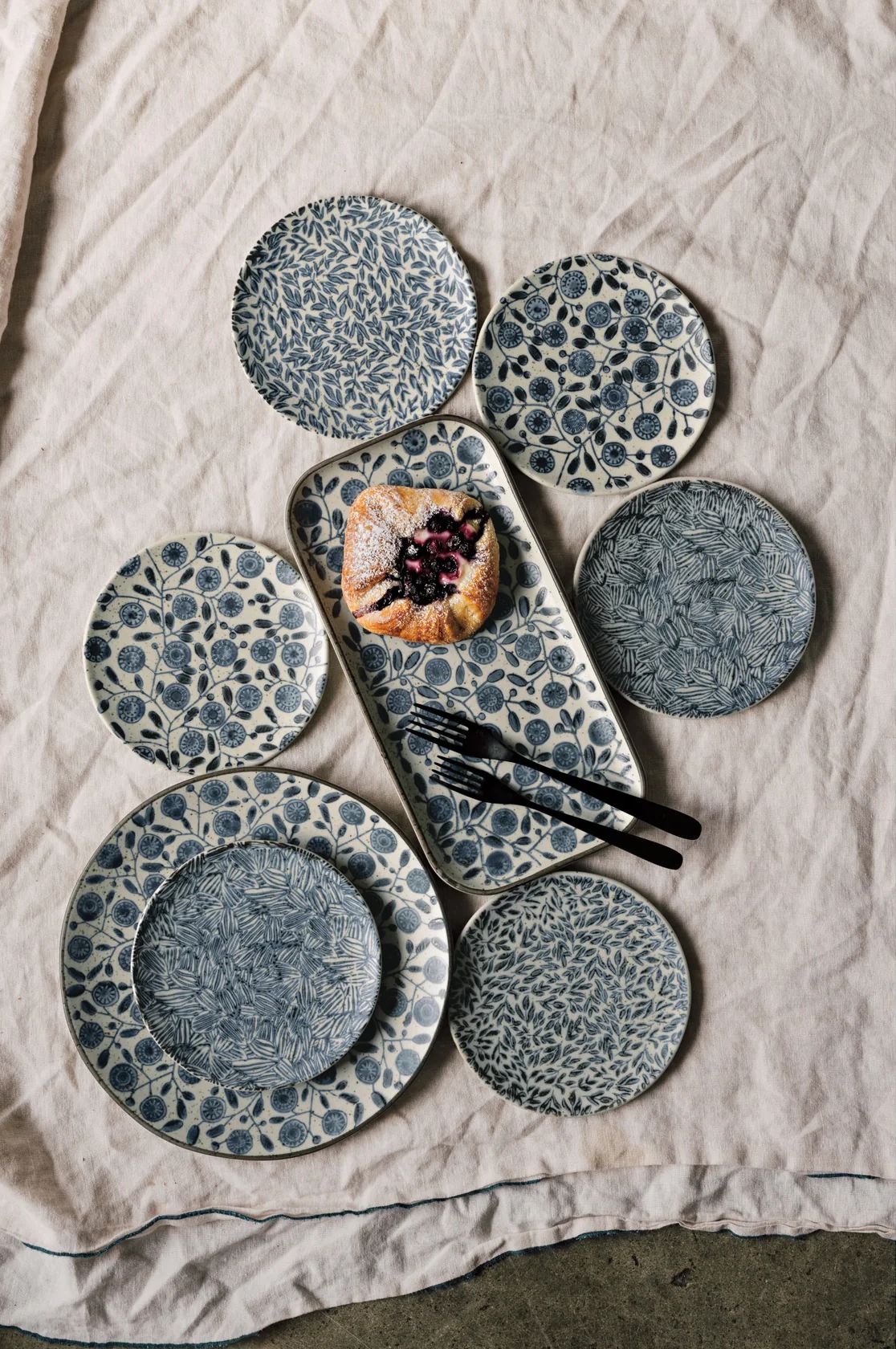 Capture the essence of water, air, earth, and fire with this collection of stoneware that soothes and revives, awakening our natural connection to the elements. Hand painted organic shapes, textural with an unglazed base.