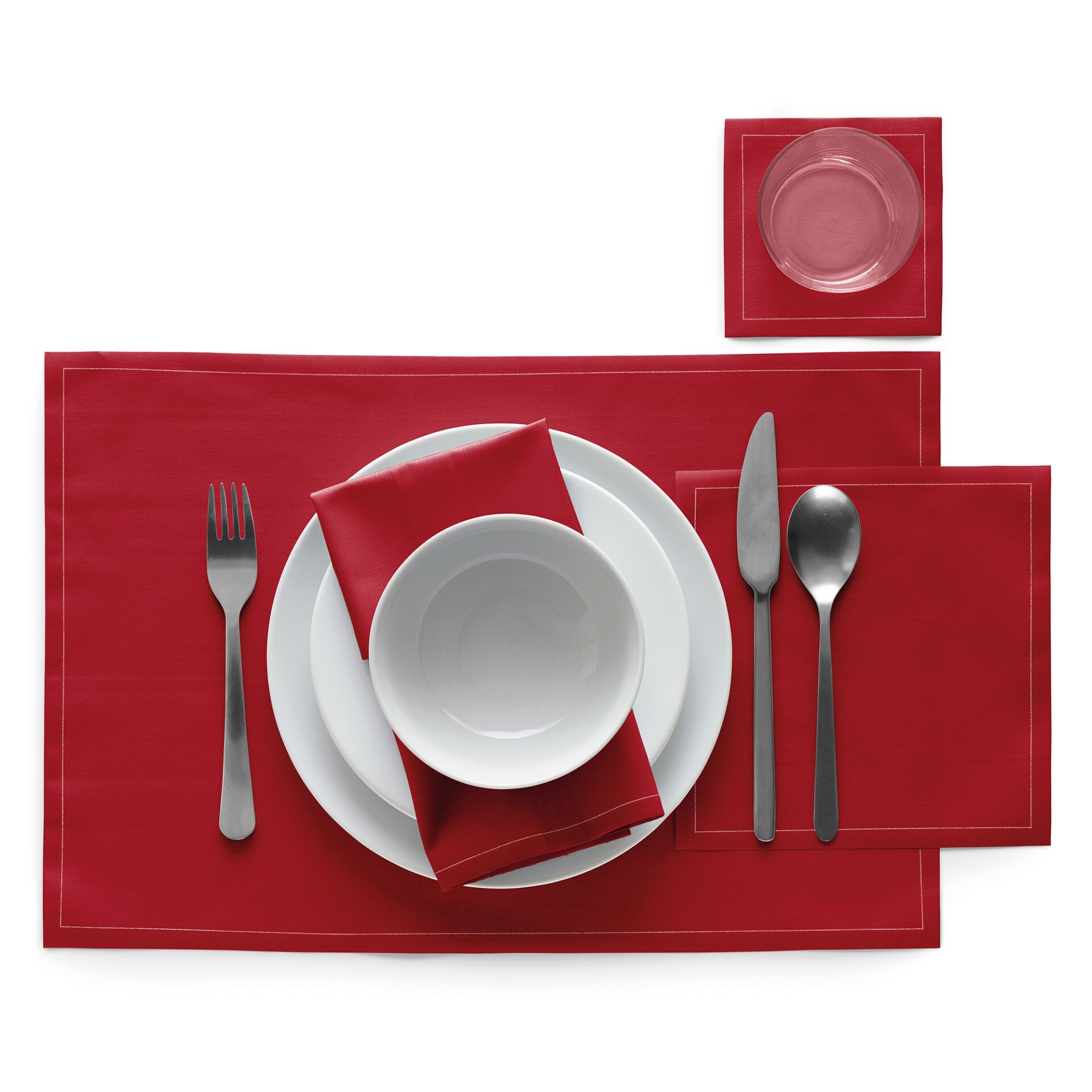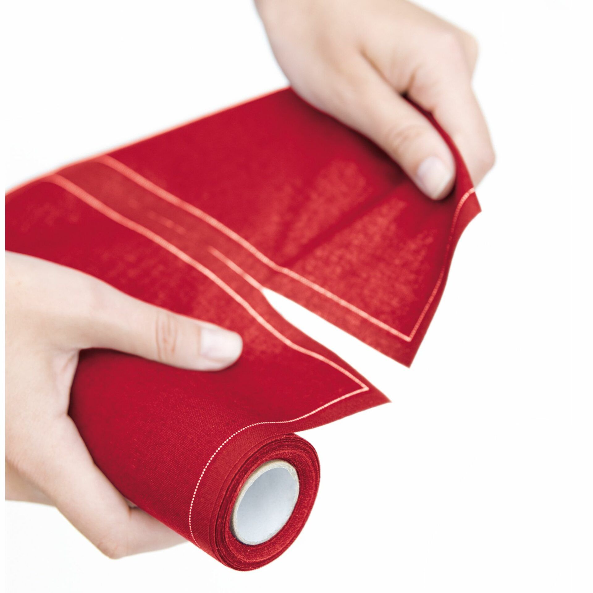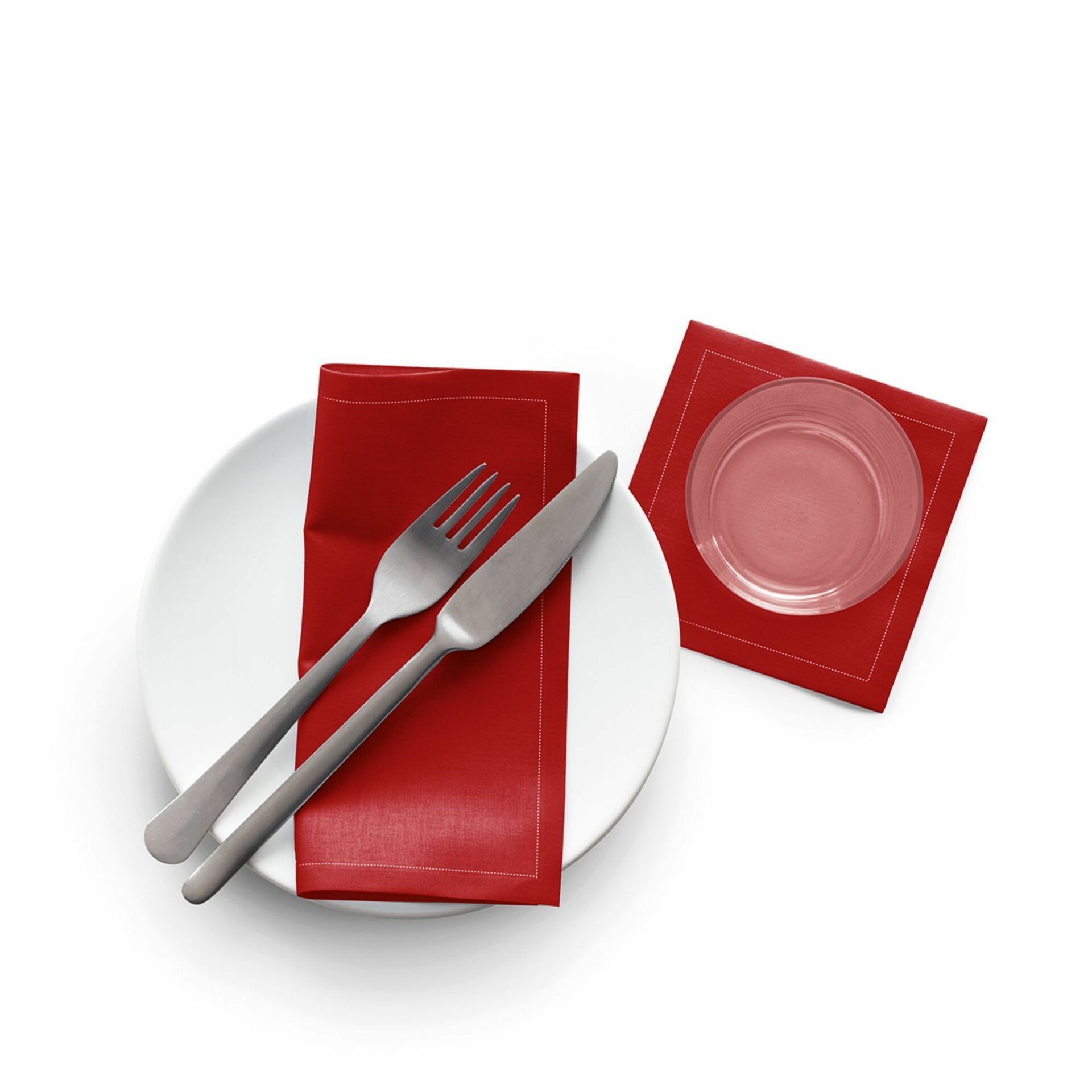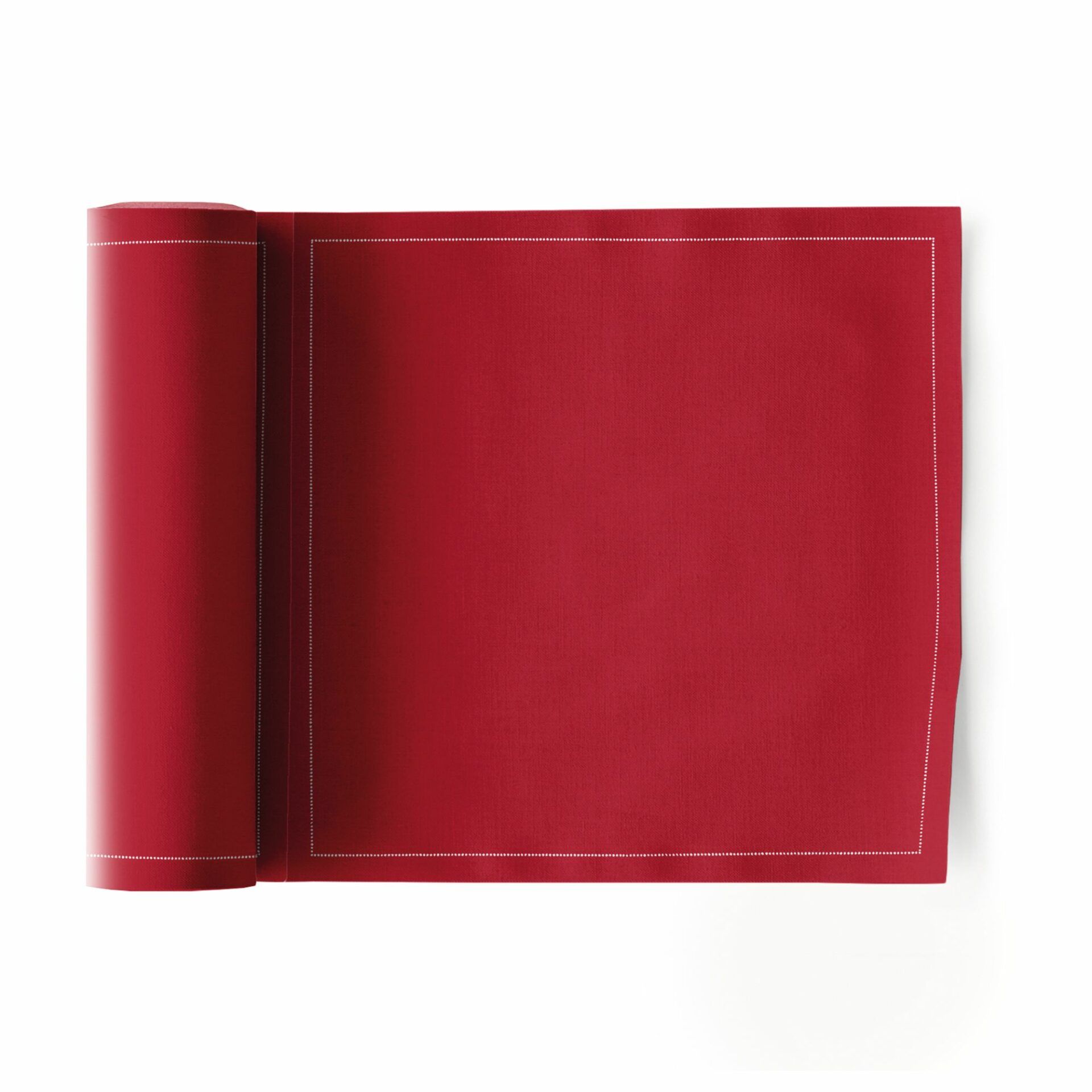 Roll of 25 20×20 cm cloth napkins in carmine red, made of 100% cotton.