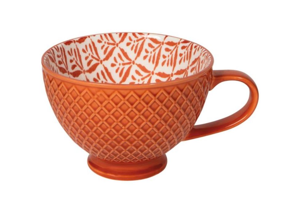 Lively hand-stamped and stencilled patterns adorn this gorgeous textured mug.