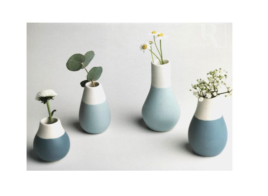 Gift boxed set of 4 stoneware mini vases with coloured varnish.