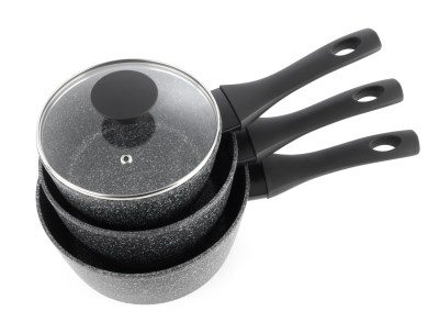 • This 3 Piece Pan Set from the Salter Megastone Collection boasts a non-stick corrosion resistant interior for long lasting use.